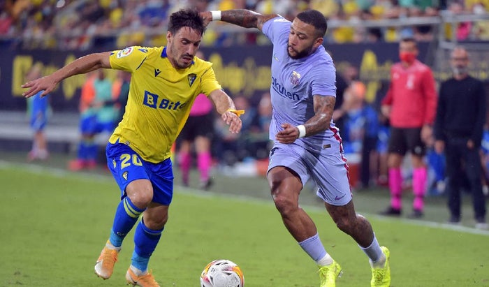 Memphis Depay remató al aire un balón casi a bocajarro (51) antes de soltar un disparo desde la frontal que sacó el arquero del Cádiz (52).