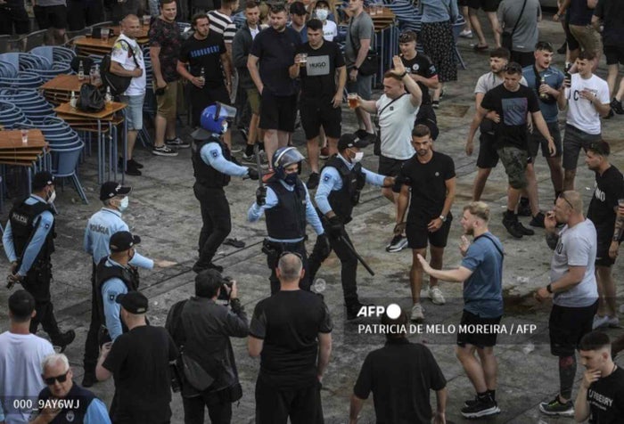Sin embargo, la orilla del río Duero, la "Baixa", está tomada por hombres y mujeres de Londres y Manchester que no paran de cantar, cerveza en mano, alentados por los más atrevidos que arengan a las masas ante la pasividad policial.