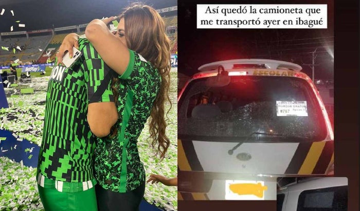 La mujer relató a través de sus redes sociales que el vehículo que la transportó con sus hijos hacia y desde el escenario fue atacado por aficionados de Deportes Tolima, quienes destruyeron algunos de los vidrios.
