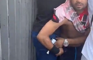 Y es que -aprovechando el tumulto-, un aficionado introdujo su mano en uno de los bolsillos del pantalón de Lugano, sacando su celular; posteriormente, trató de huir del lugar.