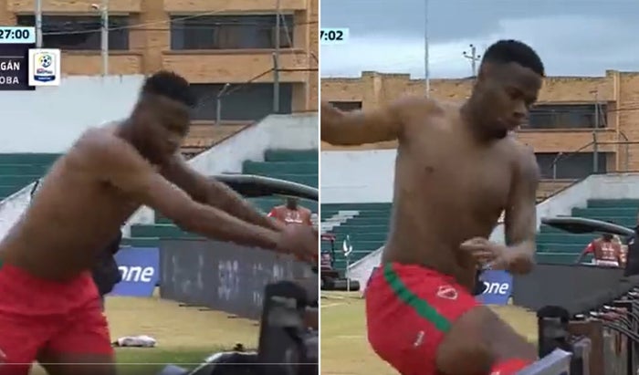 Asimismo, una de las cámaras de televisión captó al jugador -llevado por la ira, ante la injusticia que consideró- empuja las vallas, se quita la camiseta y se va directo al camerino y no al banquillo de suplentes.