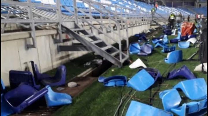 Ante los hechos, los jugadores y árbitros debieron ser trasladados hasta los vestuarios y parte del público saltó a la cancha para alejarse de los disturbios, mientras otros intentaban salir del escenario deportivo, que quedó con graves daños materiales, donde varias sillas quedaron destruidas, al igual que las baterías sanitarias de los baños.