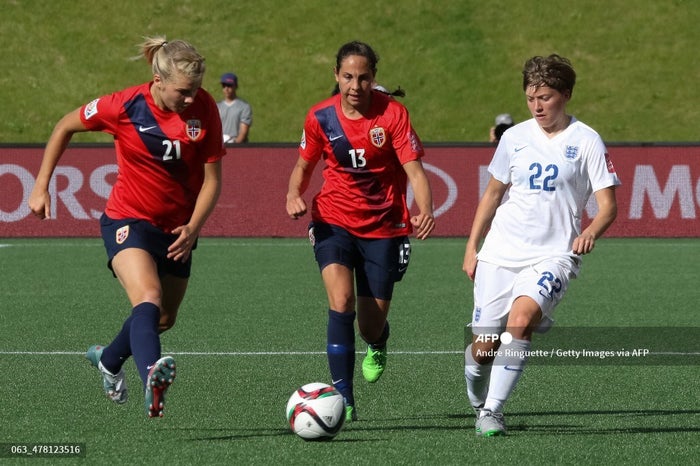 AFP Duelo europeo entre las selecciones femeninas de Noruega e Inglaterra, 2015.