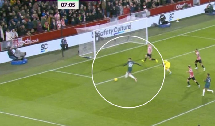 Sobre el minuto 7, Liverpool pudo abrir el marcador después de que Mohamed Salah controlara la pelota cerca del centro de la cancha. El egipcio aprovechó un desmarque de Núñez para filtrar un pase al área.