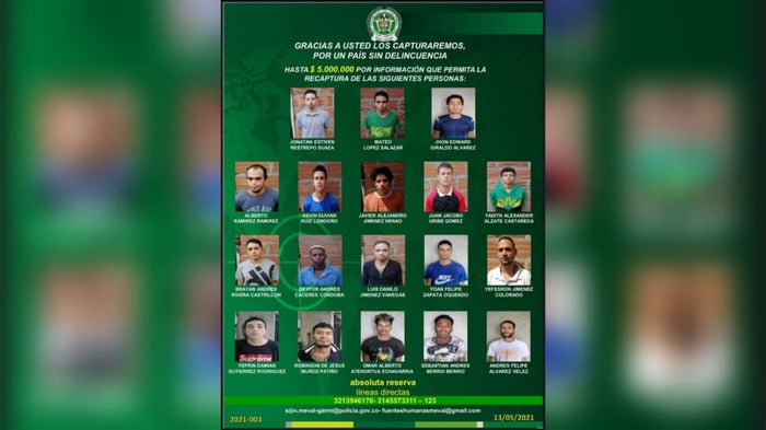 El brigadier general, Pablo Ferney Ruíz Garzón, comandante de la Policía Metropolitana del Valle de Aburrá, manifestó que por estas personas prófugas se ofrece hasta cinco millones de pesos de recompensa para quien brinde información y facilite su captura.