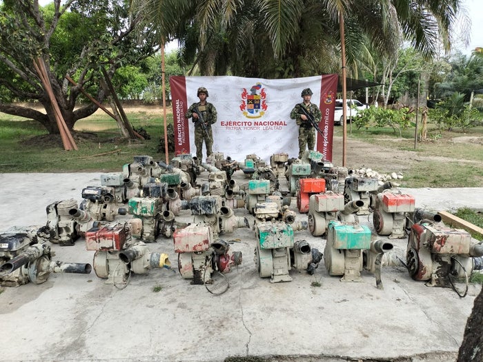 Tropas pertenecientes a la Décima Primera Brigada del Ejército Nacional y en trabajo articulado con la Policía lograron la incautación de 36 motores de diferentes marcas con bombas de tres pulgadas, utilizados para la explotación ilícita de yacimientos mineros.
