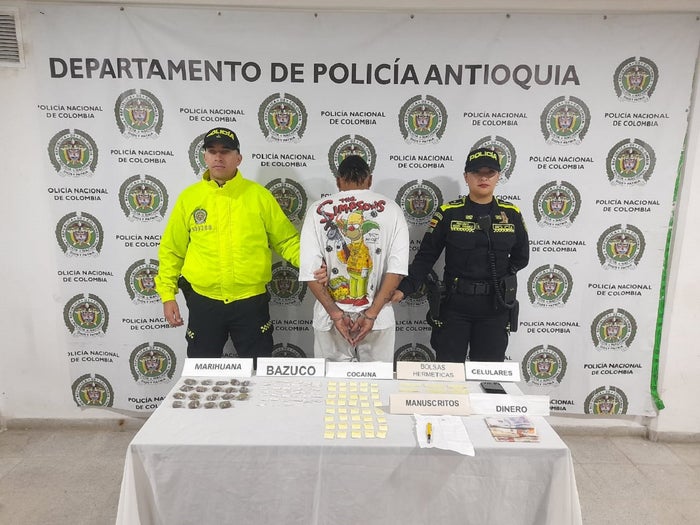 El hombre era señalado de expender sustancias estupefacientes en esta localidad del Suroeste antioqueño. En su poder tenía 22 gramos de cocaína, siete gramos de bazuco, 22 gramos de marihuana, la suma de 440.000 pesos en efectivo y un celular.