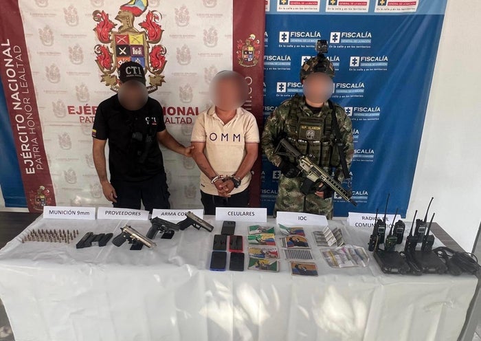 La operación desarrollada por parte del Ejército; se registró en inmediaciones del municipio de Nechí. Durante la acción, al hombre se le hallaron en su poder tres pistolas calibre 9 mm, municiones para las mismas y proveedores.