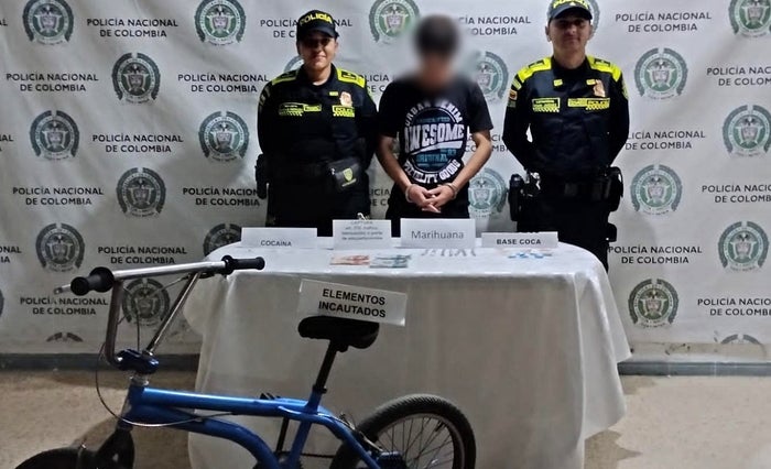 Según las autoridades, el joven tenía en su poder 13.3 gramos de marihuana, 3.6 gramos de cocaína y 10.8 gramos de base de coca.