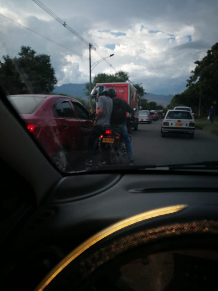 Dos hombres que se movilizaban en un motocicleta son buscados por hurtar y despojar de sus pertenencias a los ocupantes de un vehículo.