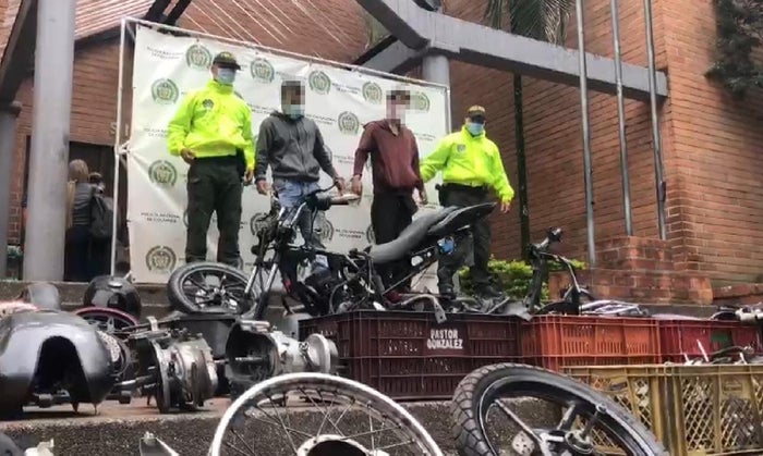 La policía capturó a dos ciudadanos venezolanos que administraba un taller que desguazaba cada mes un promedio de 36 motocicletas robadas en Medellín.