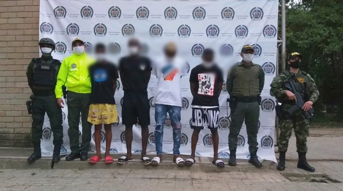 Cuatro hombres conocidos con los alias “Carlos Babilla”, “Cunde”, “Willfran” y “Clisman”, fueron capturados en el municipio de Turbo, toda vez que serían los responsables de asesinar con un machete a un joven de 18 años de edad en Turbo.