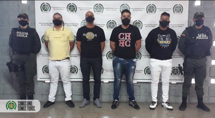 En flagrancia fueron capturados cuatro presuntos extorsionistas de 21, 33, 34 y 39 años de edad, en un centro comercial ubicado en barrio El Poblado de la comuna 14 del suroriente de Medellín, momentos en que recibían la suma de 150 millones de pesos y el traspaso de una camioneta.