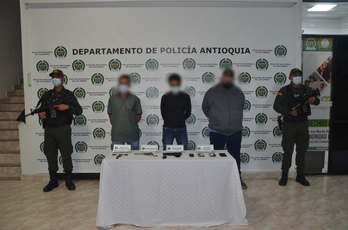El coronel Jorge Miguel Cabra Díaz, comandante de la Policía Antioquia, informó que las tres personas fueron capturadas; uno en Medellín cuando visitaba a un familiar y dos en el municipio de San Francisco, oriente del departamento.