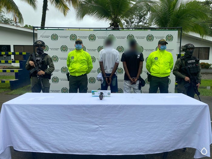 De igual manera, se produjo la captura de otro hombre identificado como Luis Elkin Ríos Mosquera, conocido con el alias de 'Mi pez'. Ambos procedimientos se llevaron a cabo en vía pública del municipio de Apartadó, logrando a su vez en el momento la incautación de una granada de fragmentación IM26.