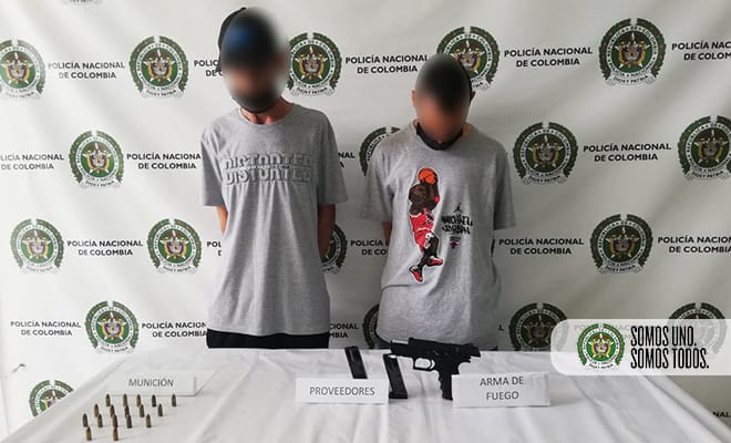 Uniformados de la Fuerza Pública en operativos de inteligencia e investigación criminal, por medio de una diligencia de allanamiento, capturaron en flagrancia a dos hermanos de 26 y 33 años de edad, señalados de hacer disparos e intimidar a la comunidad con armas de fuego en Sabaneta.