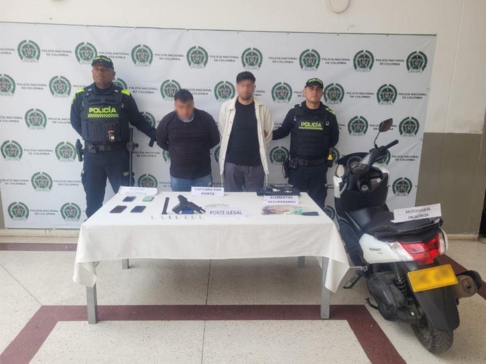 En el procedimiento se capturaron a los dos hombres de 37 y 38 años, quienes fueron presentados ante la autoridad competente, por el delito de hurto calificado y agravado y tráfico, fabricación o porte de armas de fuego.