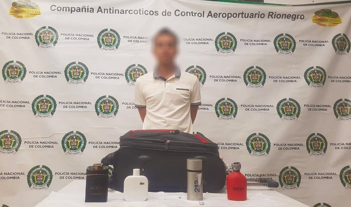 El nerviosismo de un pasajero despertó las sospechas de los policías del aeropuerto José María Córdova de Rionegro. Al inspeccionar el equipaje de mano, los uniformados descubrieron que el colombiano pretendía viajar a España con 600 gramos de cocaína escondidos en un doble fondo en los envases de lociones de una reconocida marca.
