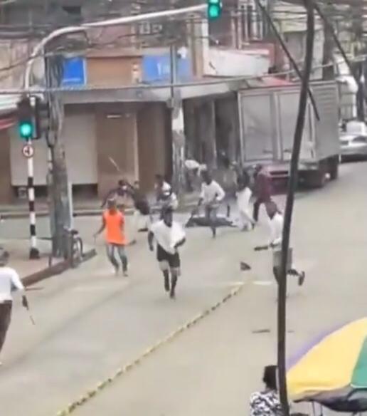 En redes sociales son virales las imágenes de más de doce jóvenes atacando con machetes a otro hombre que quedó tendido en el piso por los golpes y las heridas.
