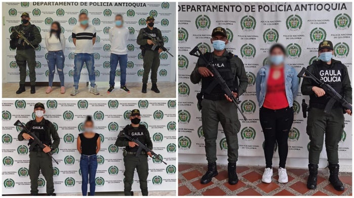 Los capturados fueron dejados a disposición de la Fiscalía General de la Nación, donde deberán responder por los delitos de concierto para delinquir agravado con fines de extorsión, informó el comando de la Policía Antioquia.