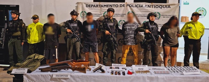 En estos operativos, las autoridades lograron la captura de cuatro personas en flagrancia por los delitos de fabricación, tráfico y porte de armas de fuego o municiones, tráfico, fabricación o porte de estupefacientes. Serían pertenecientes al Clan del Golfo que delinque en el Nordeste del departamento.