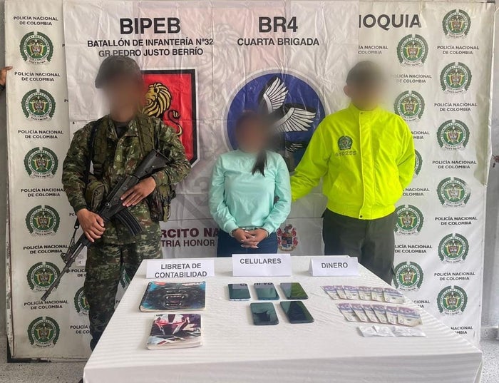La mujer, de 36 años de edad, tenía preparación como combatiente y financiera, era requerida por las autoridades por el delito de concierto para delinquir agravado, con fines de tráfico de sustancias estupefacientes, homicidios, desplazamientos forzados y extorsiones. En el momento de su captura le fueron hallados varios celulares, los cuales utilizaba para el manejo de las finanzas de la organización.