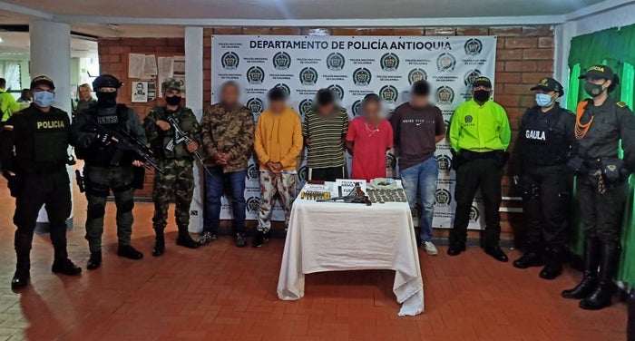 Daniel Mazo Cardona, comandante de la Policía Antioquia, señaló que estas personas serían los responsables de cometer extorsiones, amenazas y homicidios selectivos, relacionados con el control territorial y por el tráfico de estupefacientes en el suroeste del departamento.