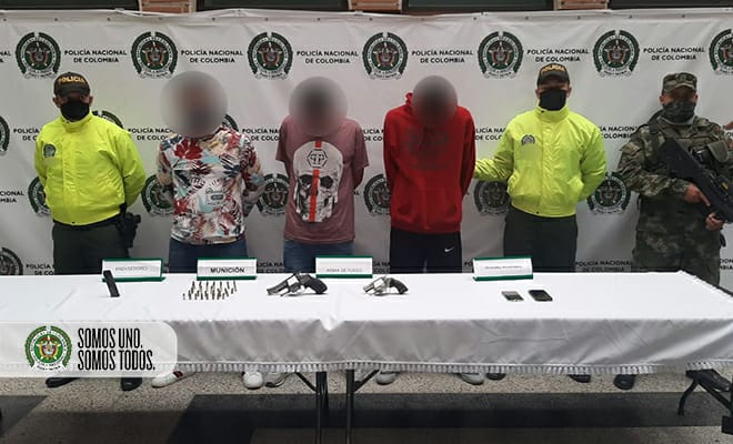 En otras acciones operativas contra el porte ilegal de armas de fuego fueron capturadas en flagrancia cuatro personas más en Copacabana y Medellín. Mediante labores de patrullaje, registro y control en el barrio San Juan de Copacabana se logró capturar a dos hombres de 20 y 31 años de edad, a quienes se les incautó un arma de fuego tipo revólver calibre 38.