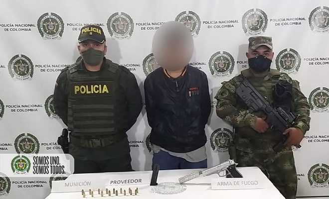 Cuando caminaba por plena vía pública de la calle 73 con carrera 59 del barrio Pachelly, zona urbana del municipio de Bello, norte del Valle de Aburrá, un hombre de 28 años fue capturado por llevar en su poder una pistola calibre nueve milímetros con un supresor de sonido, sin permiso para la misma.
