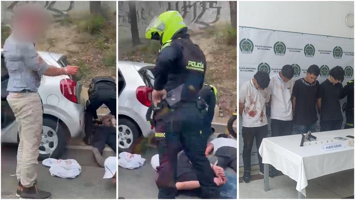 Varios conductores grabaron el instante en que la policía liberó a un hombre secuestrado por cuatro delincuentes en el barrio Zamora de Bello, norte del Valle de Aburrá.