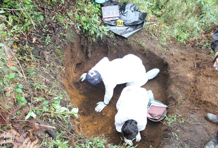 El comandante de la Policía Metropolitana del Valle de Aburrá, brigadier general Eliécer Camacho Jiménez, explicó que por el estado de descomposición del cuerpo, por lo menos llevaba enterrado cerca de tres meses. Por este motivo la identidad, la edad y el género de la víctima están por confirmarse añadió el oficial.