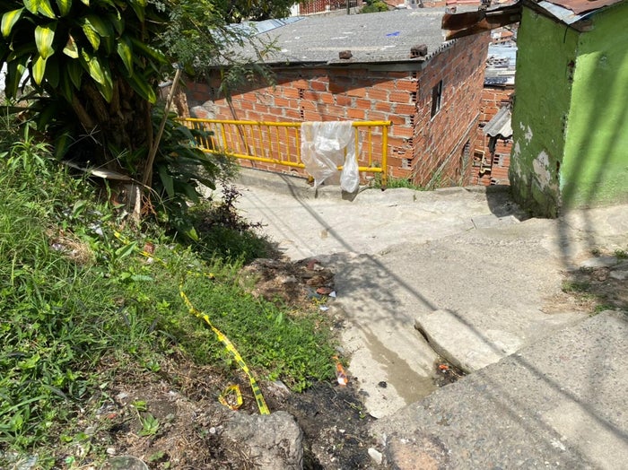 En unas escalas ubicadas en la carrera 85 con calle 58 en inmediaciones del barrio el Pesebre de la comuna trece, en la parte alta del occidente de la capital antioqueña, fue encontrado el cuerpo sin vida de una persona de aproximadamente 30 años de edad.