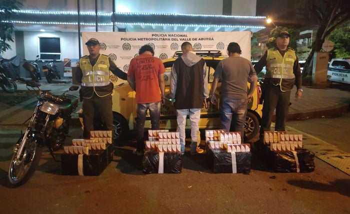 Los uniformados de la policía realizaron el registro a personas y al vehículo donde recuperan 4 cajas las cuales en su interior contenían 200 paquetes de cigarrillos. Las personas capturadas de 31, 30 y 28 años de edad fueron dejadas a disposición de la Fiscalía General de la Nación.
