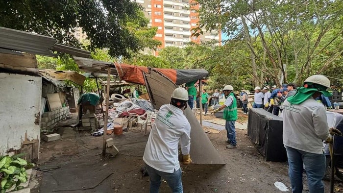 Alcaldía de Medellín Se desmantelaron ocho estructuras de madera y tejas, además de dos de mampostería