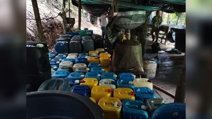 Destruyen complejo laboratorio para la producción de clorhidrato de cocaína en San Francisco, Antioquia