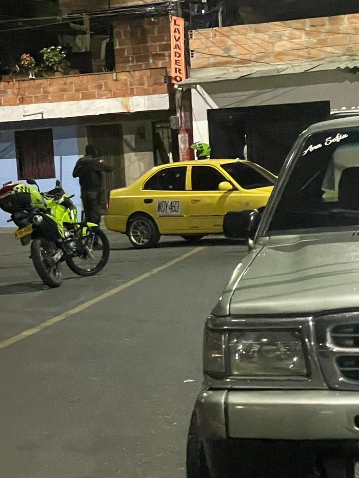 La Policía también encontró un taxi con varios impactos de bala en la calle 63 con carrera 48, barrio Cóngolo, a pocas cuadras del lugar del doble homicidio. Se presume que este vehículo pudo estar involucrado en el hecho.