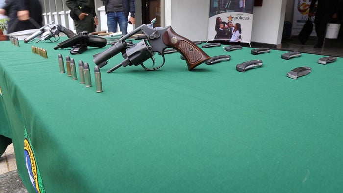 Debido a esto las dos personas fueron solicitadas para un procedimiento de requisa, acto seguido se les incautó dos armas de fuego tipo revolver con doce cartuchos calibre 38. Las autoridades adelantan las investigaciones para esclarecer qué pretendían hacer con dichas armas.