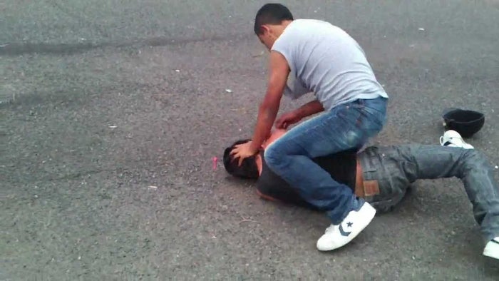 Mientras estas dos personas discutían, apareció la pareja de la mujer gestante para defenderla y comenzó una agresión entre el hombre y el adulto mayor. Este último le generó al joven dos lesiones con arma blanca en una de sus manos en el hombro y en el cuello.