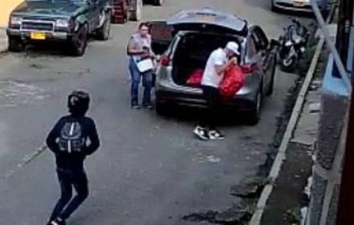 El video muestra cómo los dos delincuentes, que se movilizaban en una motocicleta, interceptaron a dos personas que se bajaban de una camioneta. Bajo amenazas con armas de fuego, los asaltantes despojaron a las víctimas de sus pertenencias y huyeron del lugar.
