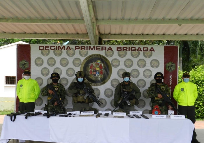 Durante esta operación militar fueron incautados tres fusiles, un arma corta, una mira telescópica, 16 proveedores, 300 cartuchos, dos granadas de mano, tres minas antipersonal, material de intendencia y comunicaciones, reveló el oficial.