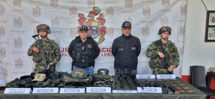 Durante esta operación militar se incautaron 3 fusiles, 10 proveedores, más de 290 cartuchos, 2 radios de comunicaciones, 5 chalecos, 3 uniformes camuflados, un equipo de campaña, un casco militar y una chapuza para pistola, puestos a disposición de la Fiscalía General de la Nación .
