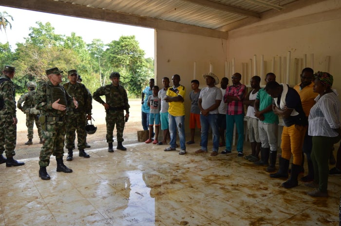 Añadió el oficial que en el municipio chocoano también hay presencia de infantes de Marina, pilotos de la Fuerza Aérea y uniformados de la Policía Nacional.