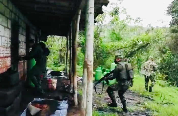 Tanto los insumos químicos como el laboratorio, fueron destruidos de forma controlada. Esta actividad ilegal también estaba generando un grave daño ambiental por causa del vertimiento de las sustancias antes mencionadas en las fuentes hídricas, reveló el comando de la Séptima División del Ejército.