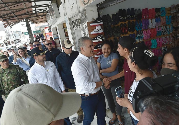 A través de su cuenta en Twitter, Palacios indicó que, junto con el presidente Duque, "recorremos el comercio, acompañamos y dialogamos con los habitantes. ¡No existen territorios vedados para el Gobierno Nacional ni para nuestra Fuerza Pública, Colombia no se doblega ante criminales!".