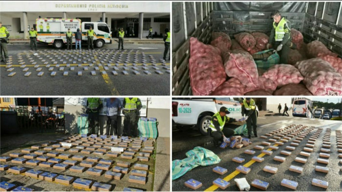 El coronel Giovanny Buitrago Beltrán comandante de la Policía Antioquia, señaló que este cargamento, avaluado en mil 1250 millones de pesos, tenía como destino final la capital de la montaña, venían camuflados en varios bultos de papa. En este hecho el conductor del automotor, un hombre de 60 años, resultó capturado, añadió el oficial.