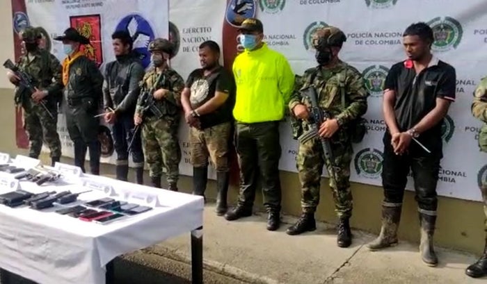 En este operativo fueron incautados a los detenidos una subametralladora, tres pistolas, más de 150 cartuchos, nueve proveedores, nueve celulares, cuatro radios de comunicación y dinero en efectivo, informó la Cuarta Brigada del Ejército.