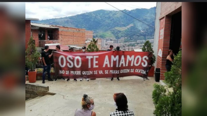 Durante esta marcha se alcanzan a escuchar disparos, pitos de carros y motos, aplausos de los asistentes, quienes llevan una pancarta en fondo rojo con las palabras en mayúscula en la cual se puede apreciar el mensaje “ OSO TE AMAMOS. NO SE MUERE QUIEN SE VA. SE MUERE QUIEN SE OLVIDA”
