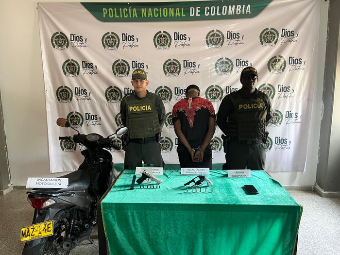 En zona urbana del municipio de Turbo, mediante la reacción de las patrullas adscritas al Modelo Nacional de Vigilancia Comunitaria por Cuadrantes, La Policía Nacional logró la captura en flagrancia de dos sujetos de 18 años y 21 años, quienes hurtaron con arma de fuego a una joven de 22 años en el barrio Obrero de Apartadó.