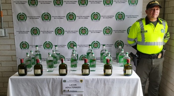 Según el informe oficial, en total incautaron seis botellas de whisky, seis garrafas de aguardiente y otros 12 litros del mismo licor, todo avaluado en cuatro millones de pesos.
