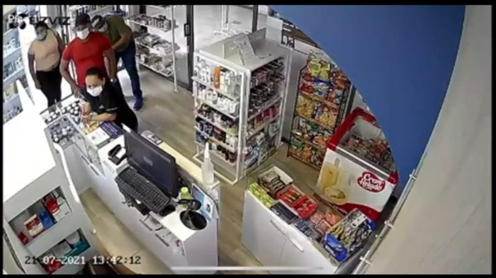 Este hecho quedó grabado en video de una de las cámaras de seguridad del establecimiento. En las imágenes se puede ver cómo de manera estratégica, estas tres personas ingresan a dicha farmacia.